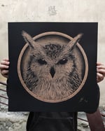 Silk screen printed with metallic bronze inks on 250gsm Rives Tradition Le Noir uncoated black paper, hand pulled by the little furry critters at Inkspit Rats.