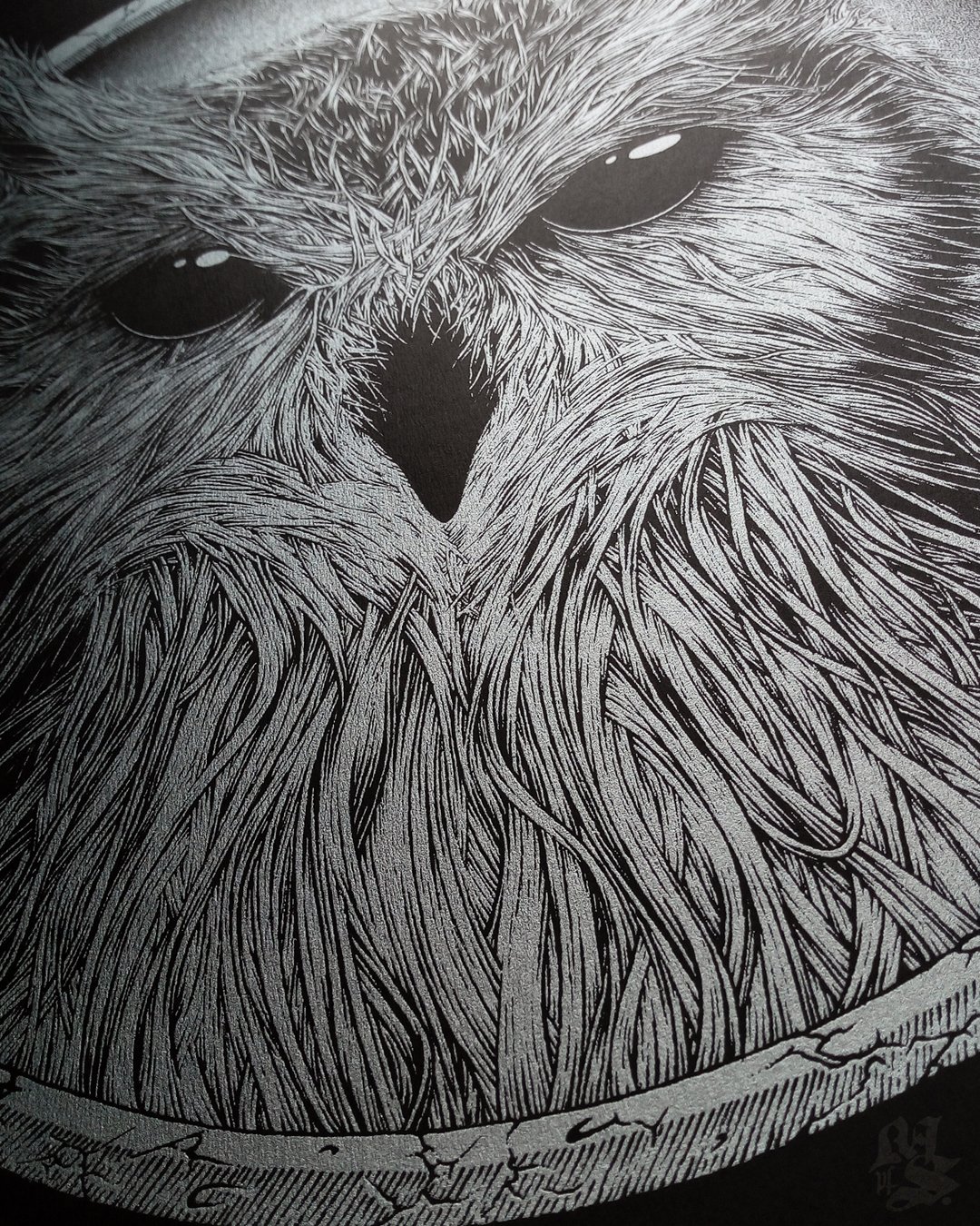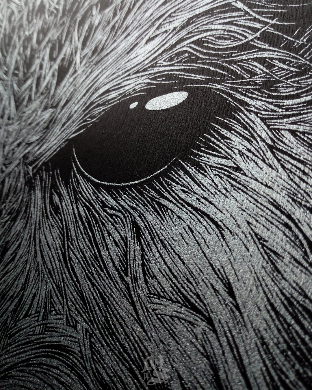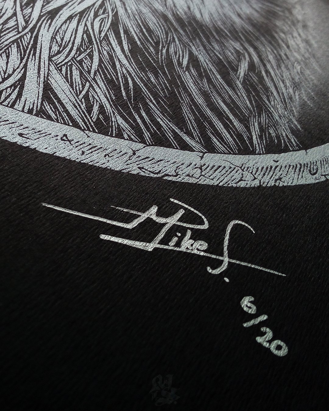 Silk screen printed with metallic silver inks on 250gsm Rives Tradition Le Noir uncoated black paper, hand pulled by the little furry critters at Inkspit Rats.